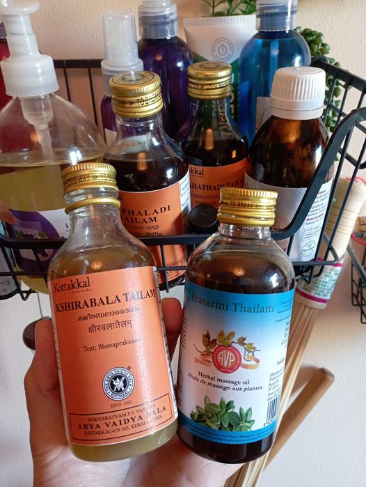 Les voilà enfin ! Mes huiles de massage 100% made in India, 100% ayurvédiques ! Elles ont toutes des propriétés particulières et s’utilisent pour des massages bien précis : harmonisation des trois doshas, nettoyage des canaux subtils, détente des muscles, lutte contre le stress ou les maux de tête… Certaines possèdent même des vertus aphrodisiaques !